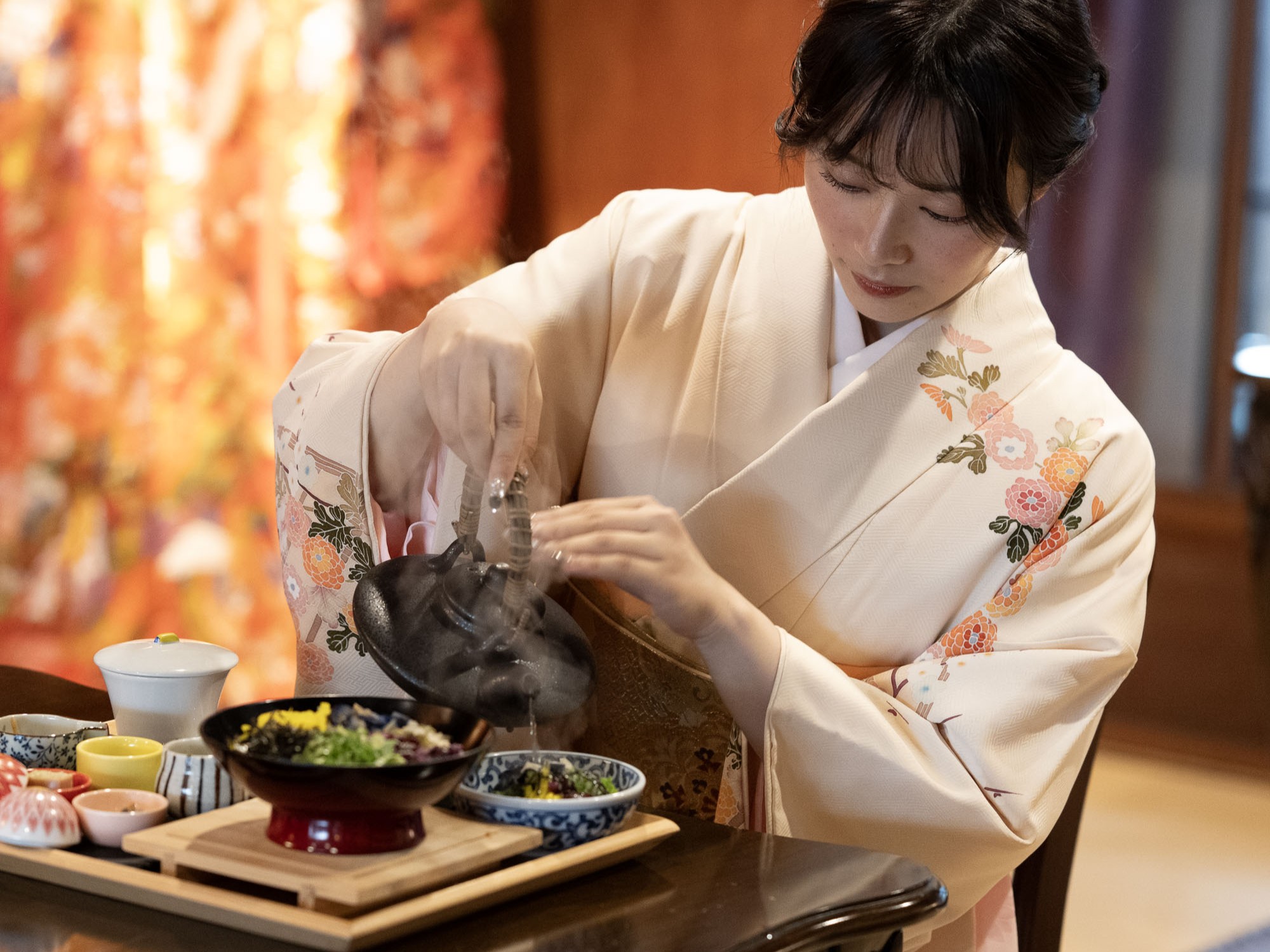 Enjoy a special experience in a Kyoto townhouse over 130 years old, combining a luxurious pure silk kimono rental with a traditional meal. The plan includes professional kimono dressing and hairstyling, so you can participate completely hands-free.