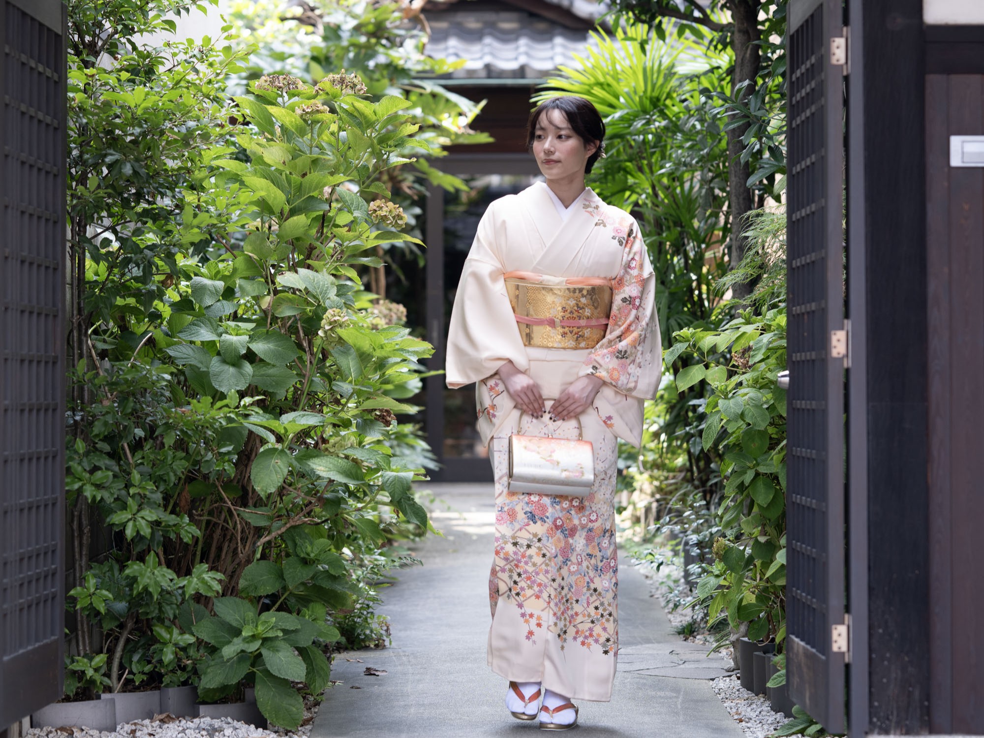 Included: Pure silk kimono, obi sash, full kimono accessories, kimono dressing, hairstyling, meal